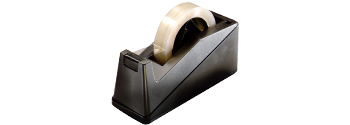 Convenient, black 1" core tape dispenser keeps hands free. Weighted and balanced for stability on work surfaces.