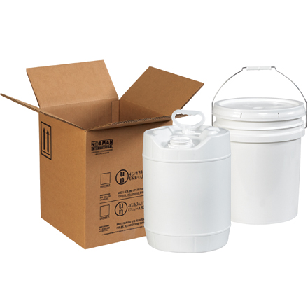 Safely ship hazardous materials in strong, white plastic pails.